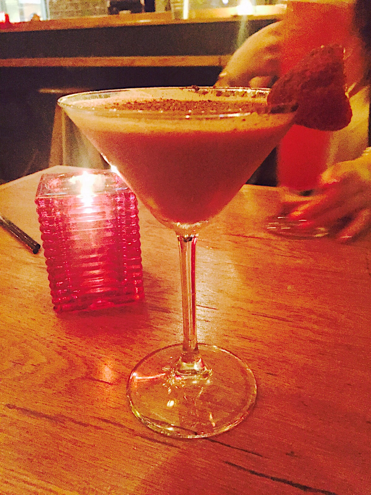 As we made our way inside I was pleasantly surprised by the classy vibe. The little tea lights burning on the tables, the grand piano and the smartly dressed (and quite cute) waiters. “something fruity for me” I said scanning the options. “oh I want something strong” I heard one of the other girls say.