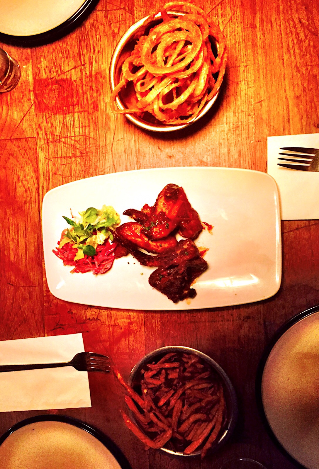 We also had some BBQ wings and skinny onion rings…