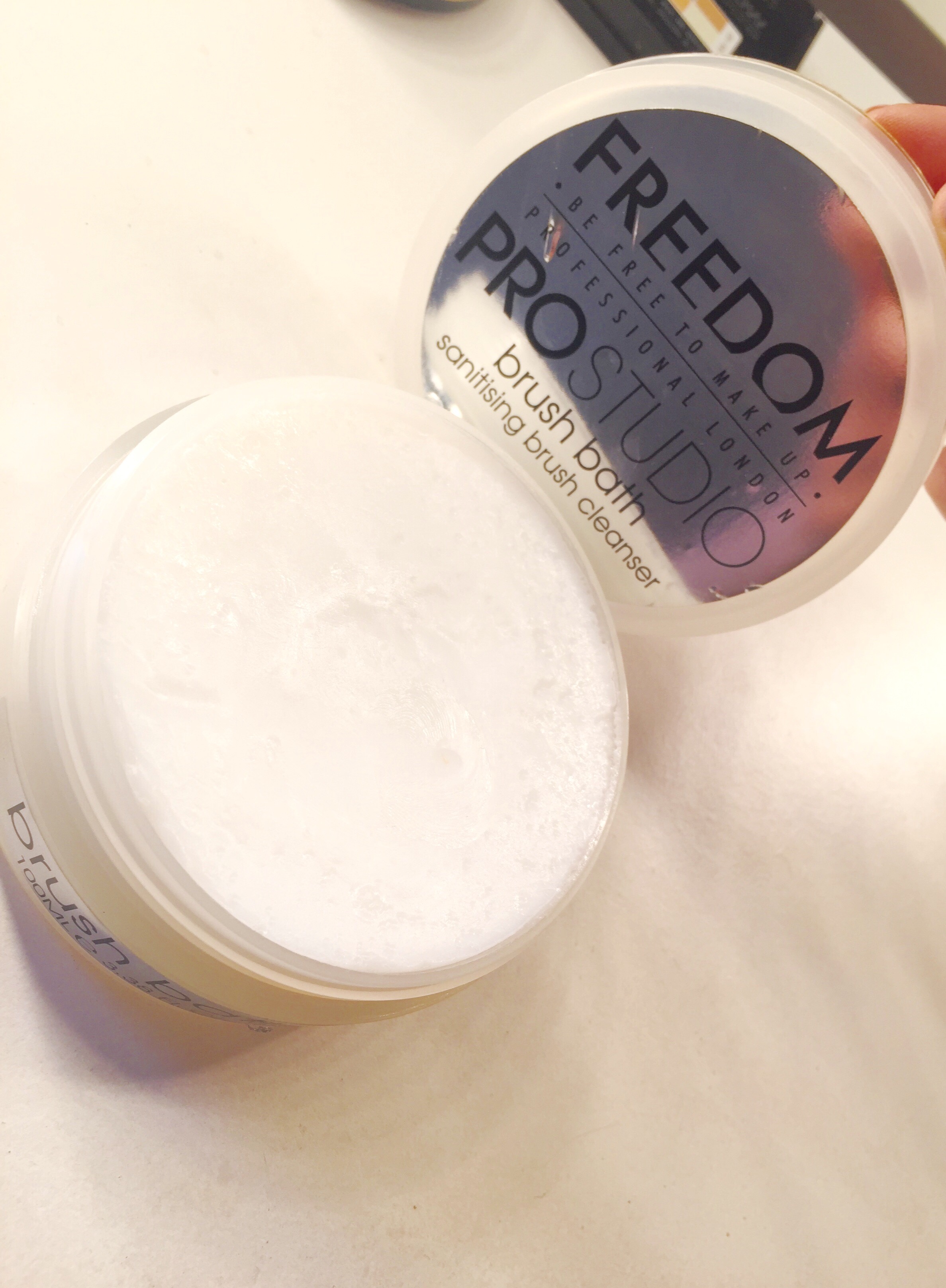 This wee baddie is Freedom Studio Solid Brush Bath and it’s going to revolutionise your brush bathing life! Step 1- wet the brush, Step 2- Rub it in the brush bath, Step 3- work into your hand whilst running under water for completely sanitised brushes WHILST protecting the bristles! You know that feeling when your brushes are fresh and your make up GLIDES on? Well now you can have it every day with little to no hassle! Let’s not forget also honey, that using dirty make up brushes breaks you out and causes your skin NO end of issues from clogged pores all the way too….pink eye!!! (I read that somewhere and it terrified me, so now you know too). Hey, at £7 a pop, what have you got to lose darlin’? Buy HERE
