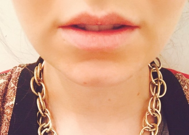 The next morning I woke up and I was HORRIFIED! My face looked…different. I naturally have big features- big eyes, a big nose but JEEZ LOUISE these LIPS! I panicked- I almost called in ‘ugly’ to work and I wrapped a scarf around my face on the train in shame. I WAS BOTCHED!!!!