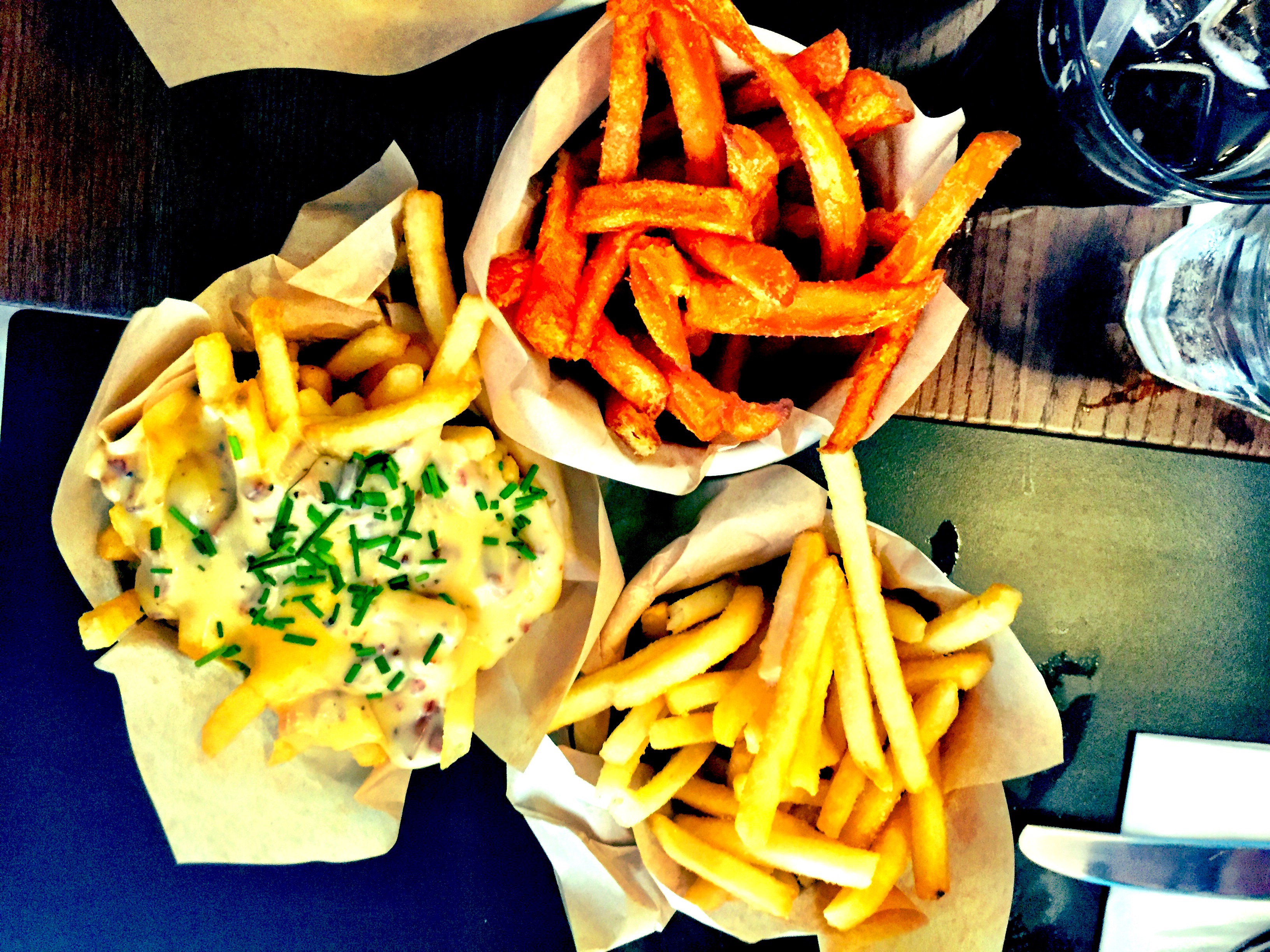 Sweet potato, cheese and bacon, and classic- you can’t go wrong! Get a chipotle mayo to compliment them- its deeeeeeeeelish!