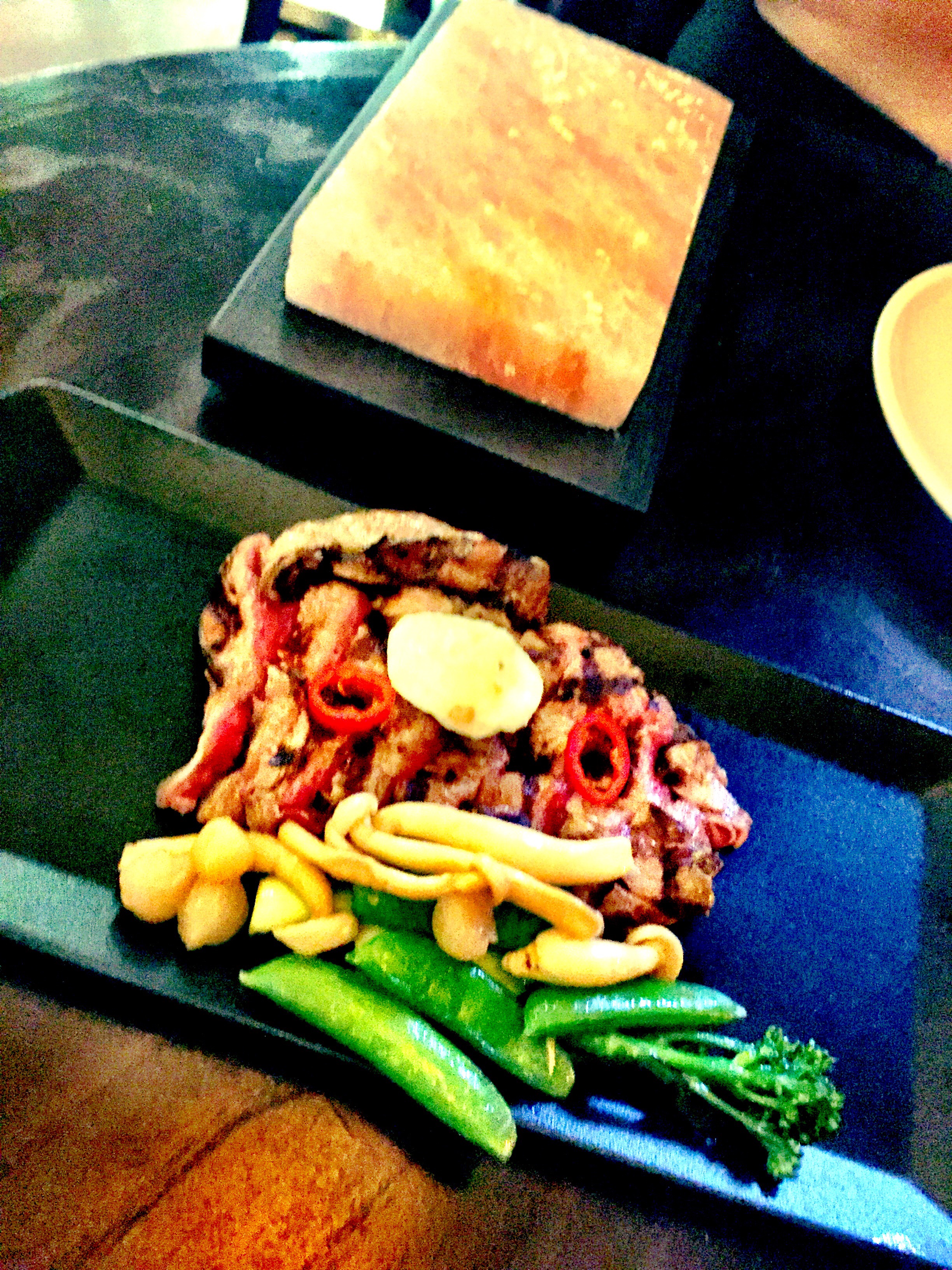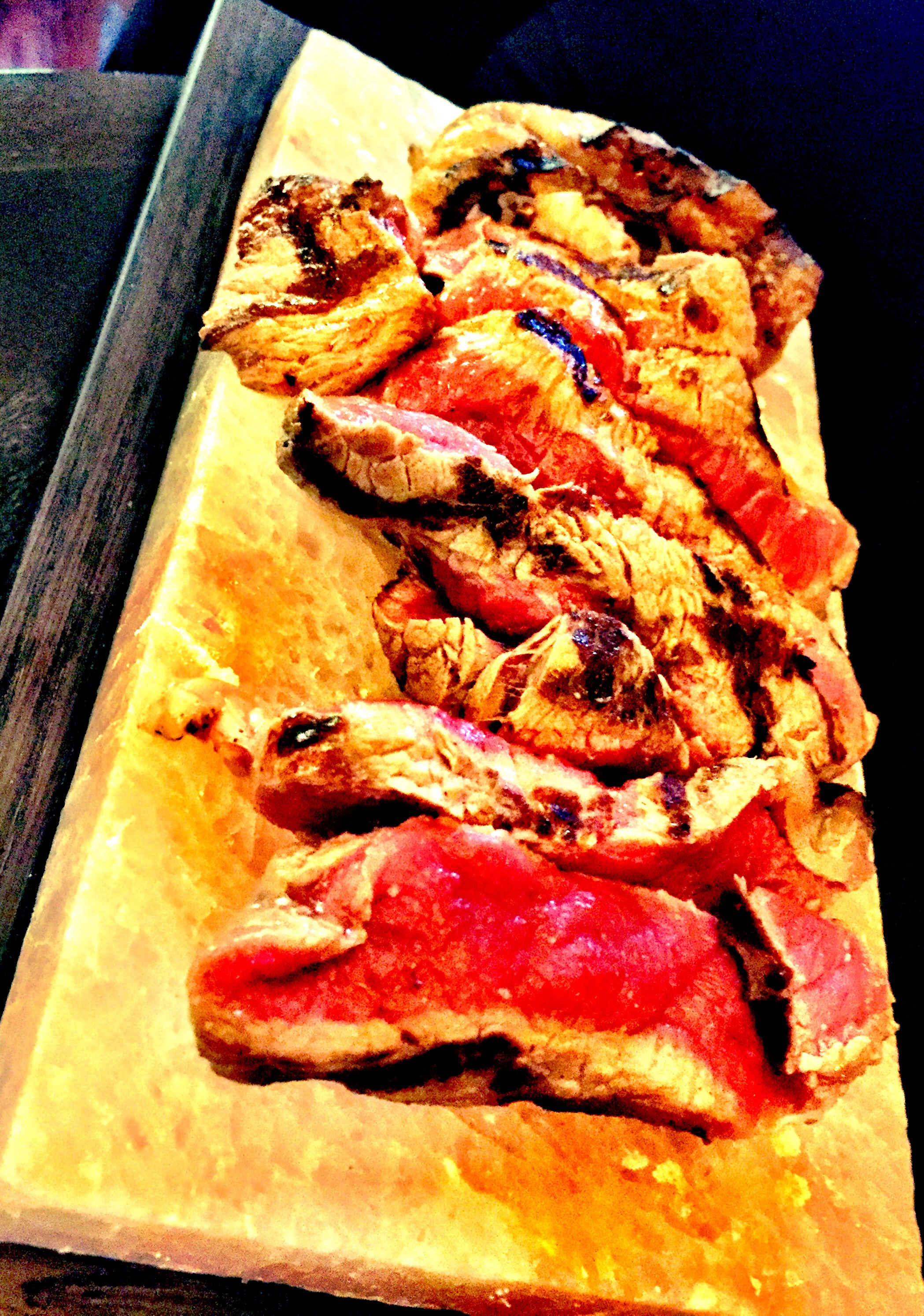 The steak comes sliced and raw and you cook it yourself on a Himalayan rock salt block- such a cool experience and means you get it just the way you like EVERY TIME! It was EXSQUISITE!