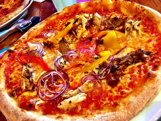 I feel I may have went a little overboard with the toppings as my slices struggled to maintain their integrity when I lifted them (resulting in a rather fetching grease stain from a rogue chicken bit) but outfit ruiners aside- the pizza was LOVELY.