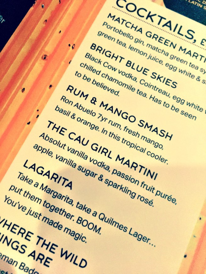 Seated upstairs, we perused the cocktails menu…
