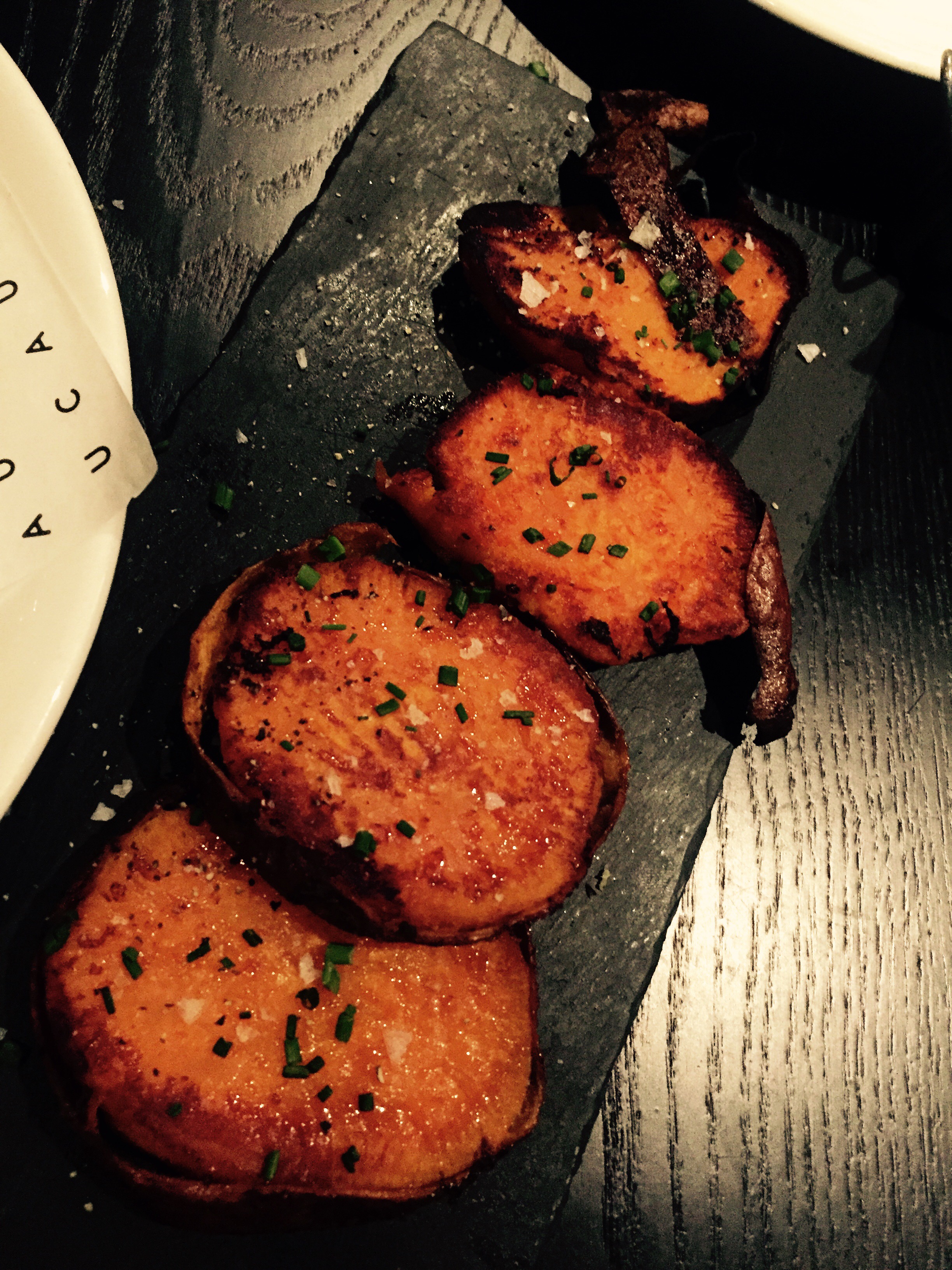 The burger was sooooo tasty- medium cooked to perfection. The braised beef gave it some juice and the onion rings hit me with a little bit of a crunch. Delightful! The sweet potato was the perfect little side dish- sweet, herby, delishhhhh!