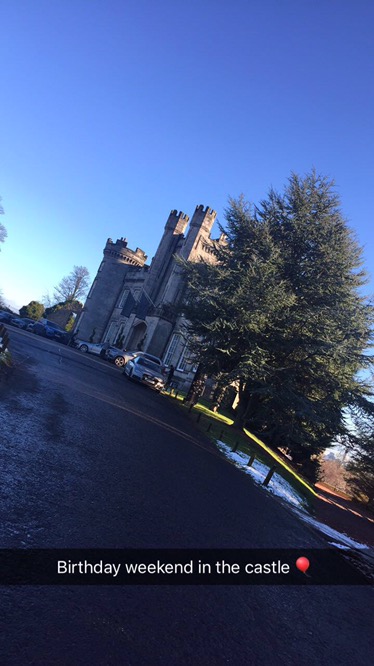 So we pull up and I am mesmerised by how pretty this place is- the grounds are gorgeous, the castle is obviously a belter and there was snow on the ground and sunshine in the sky…it’s gonna be a gooooooood weekend : )