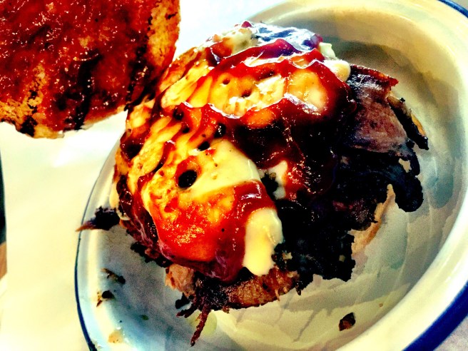 Ta-daaaaaaaaaa! Served up on a lil tray we got our meats and shared a side of fries (we asked for the campfire chilli but it wasn’t ready yet and we were in no fit state to be waiting around- but it’s definately on my list for next time!) The fries were lovely, seasoned with a little spice to give em a little kick to get those tastebuds twirling!